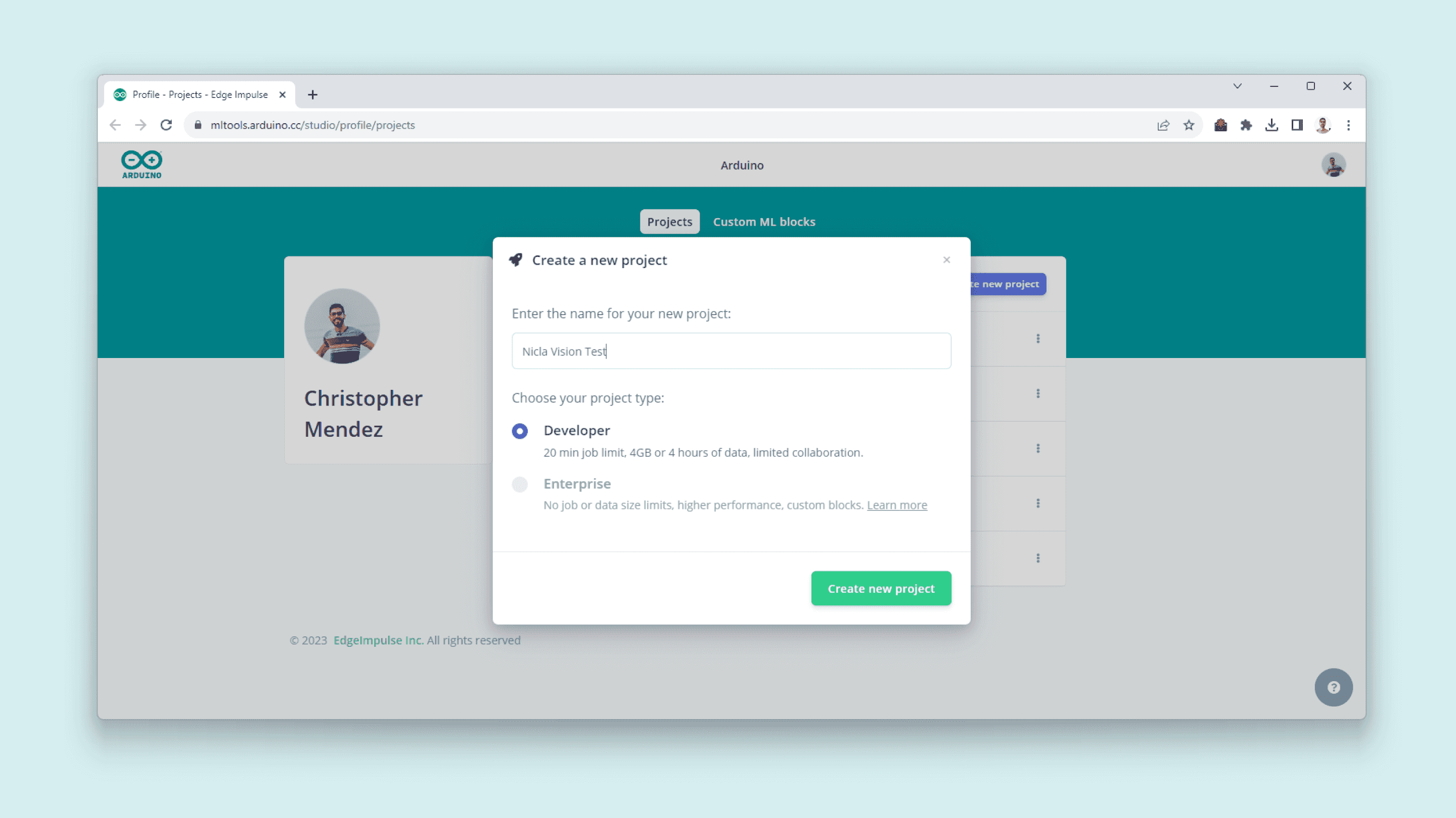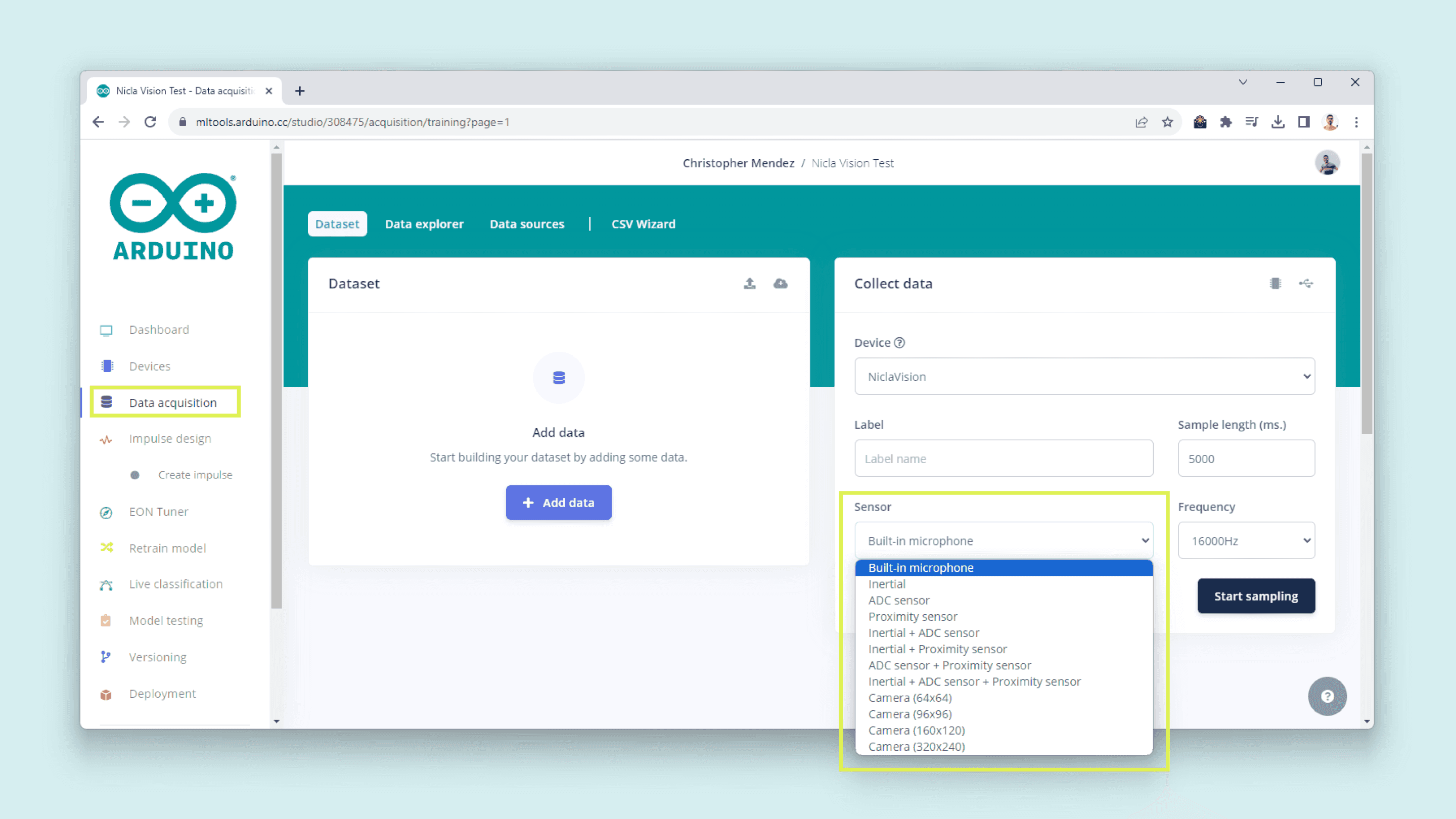 - To create custom Machine Learning models, the Machine Learning Tools add-on integrated into the Arduino Cloud is needed. In case you do not have an Arduino Cloud account, you will need to create one first.