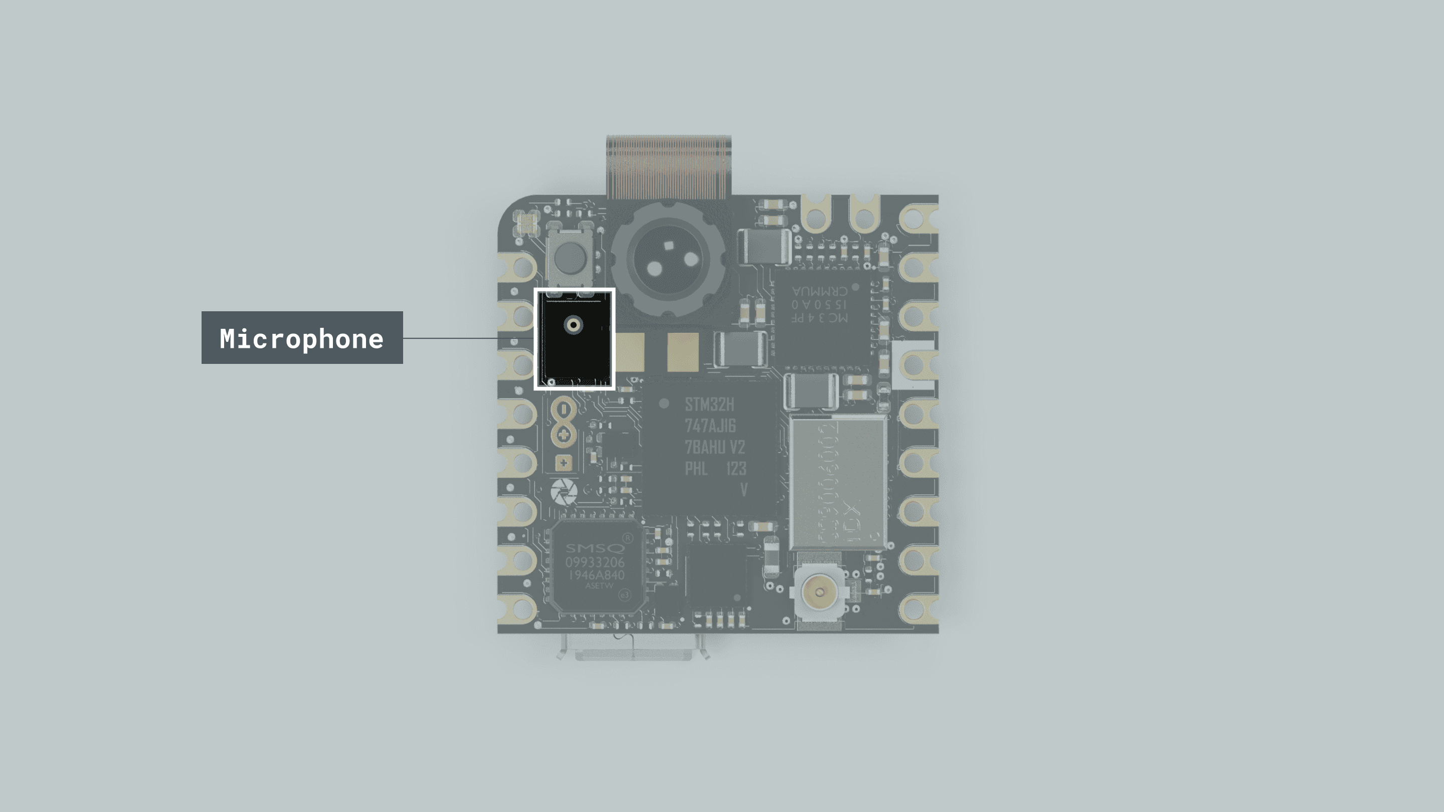 - Microcontroller: the heart of the Nicla Vision is the dual-core STM32H747 (U1), including an Arm® Cortex®-M7 running at 480 MHz and an Arm® Cortex®-M4 running at 240 MHz. The two cores communicate via a Remote Procedure Call mechanism that allows calling functions on the other processor seamlessly.