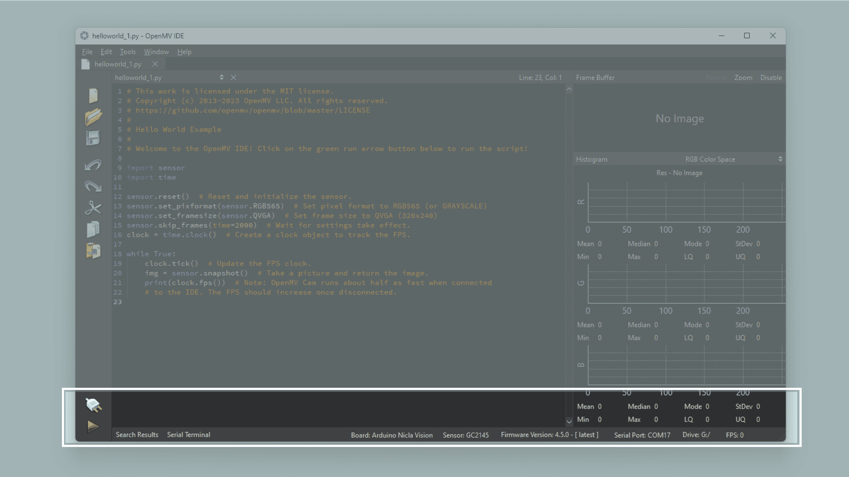 Before you can start programming MicroPython scripts for the Nicla Vision, you need to download and install the OpenMV IDE.