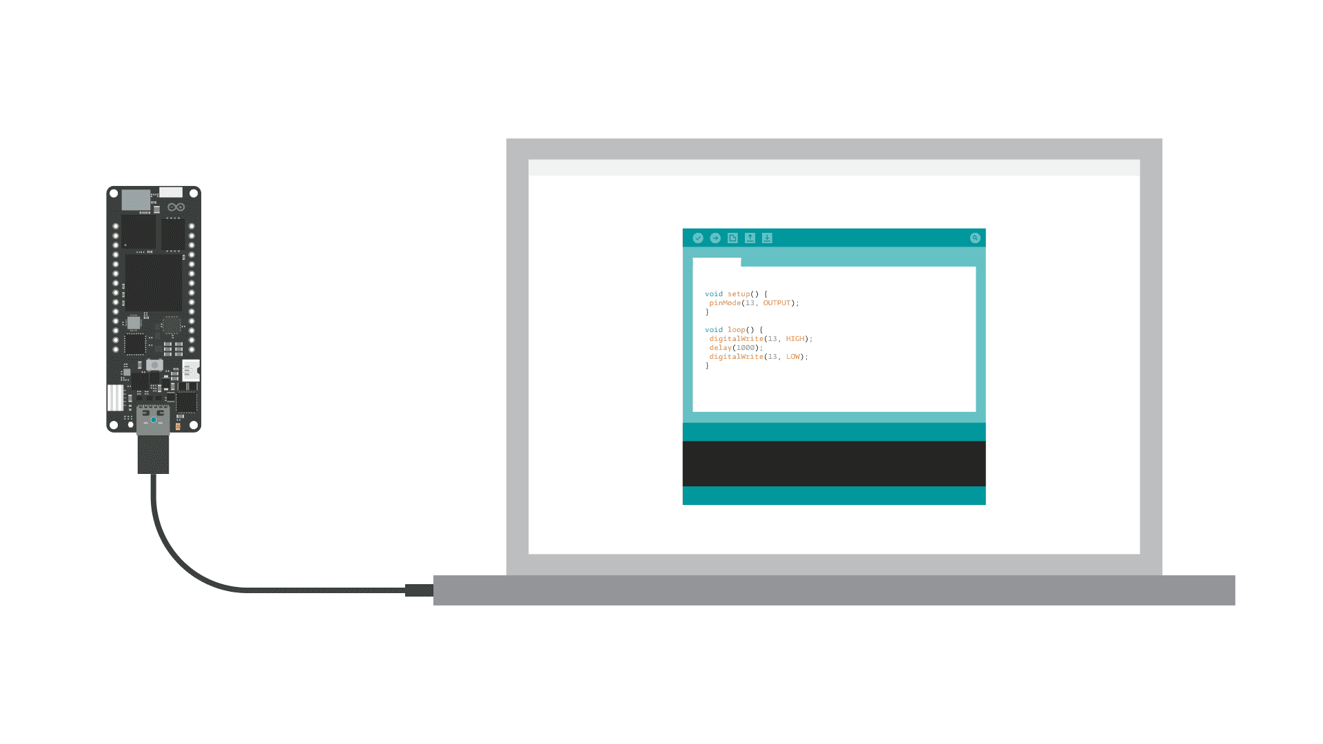 Begin by plugging in your Portenta board to your computer using a USB-C® cable and open the Arduino IDE. If this is your first time running Arduino sketch files on the board, we suggest you check out how to set up the Portenta H7 for Arduino before you proceed.