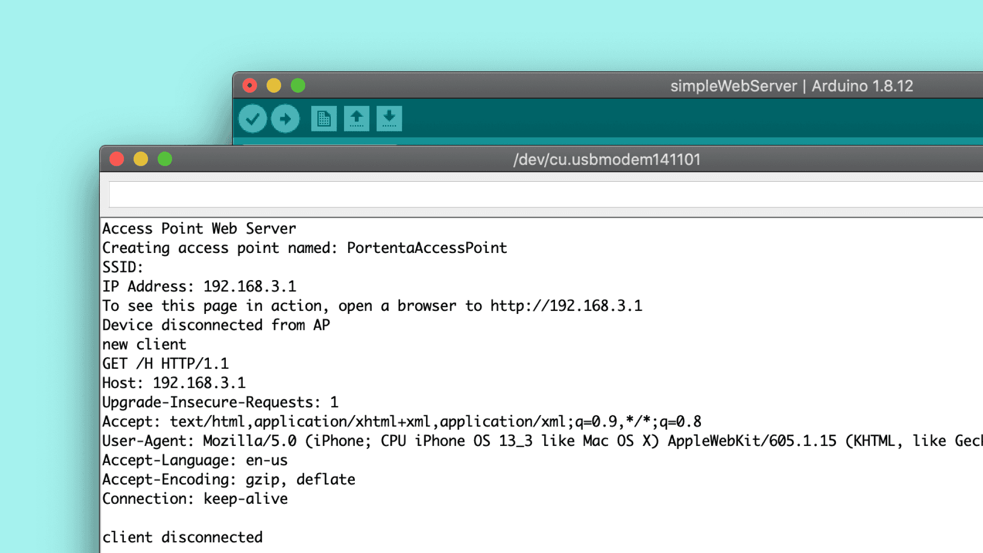 With the access point set up, you create a client server architecture where the board provides a web server communicating with the client devices over HTTP. The connected devices can then make HTTP GET requests to the server to retrieve web pages served by the web server on the board. This makes the Portenta H7 an ideal board for developing IoT solutions where external client devices can send and receive information while more complex processing tasks take place on the server.