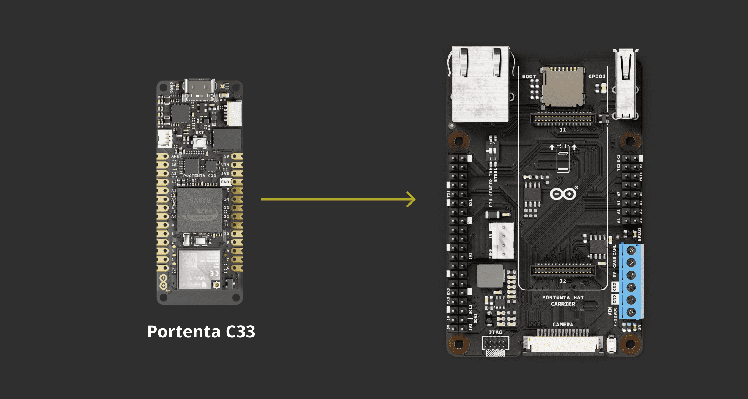 In case you want to use the Portenta Hat Carrier with a Portenta H7/C33: