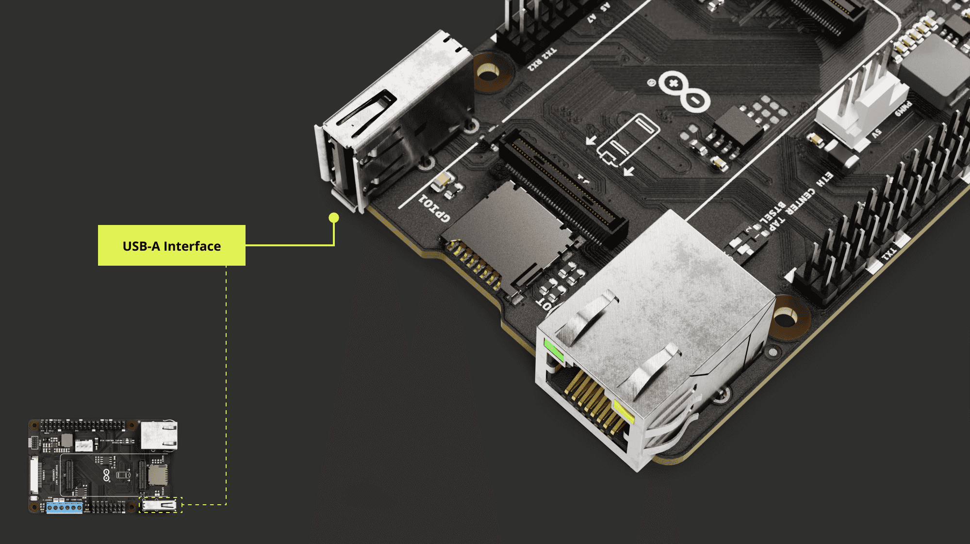 This versatility extends to its connectivity: a USB-A for peripherals, 1000 Mbit Base-T Ethernet, SPI, I2C, I2S, and UART interfaces accessible via a 40-pin male header, and MIPI camera support exclusive for the Portenta X8.