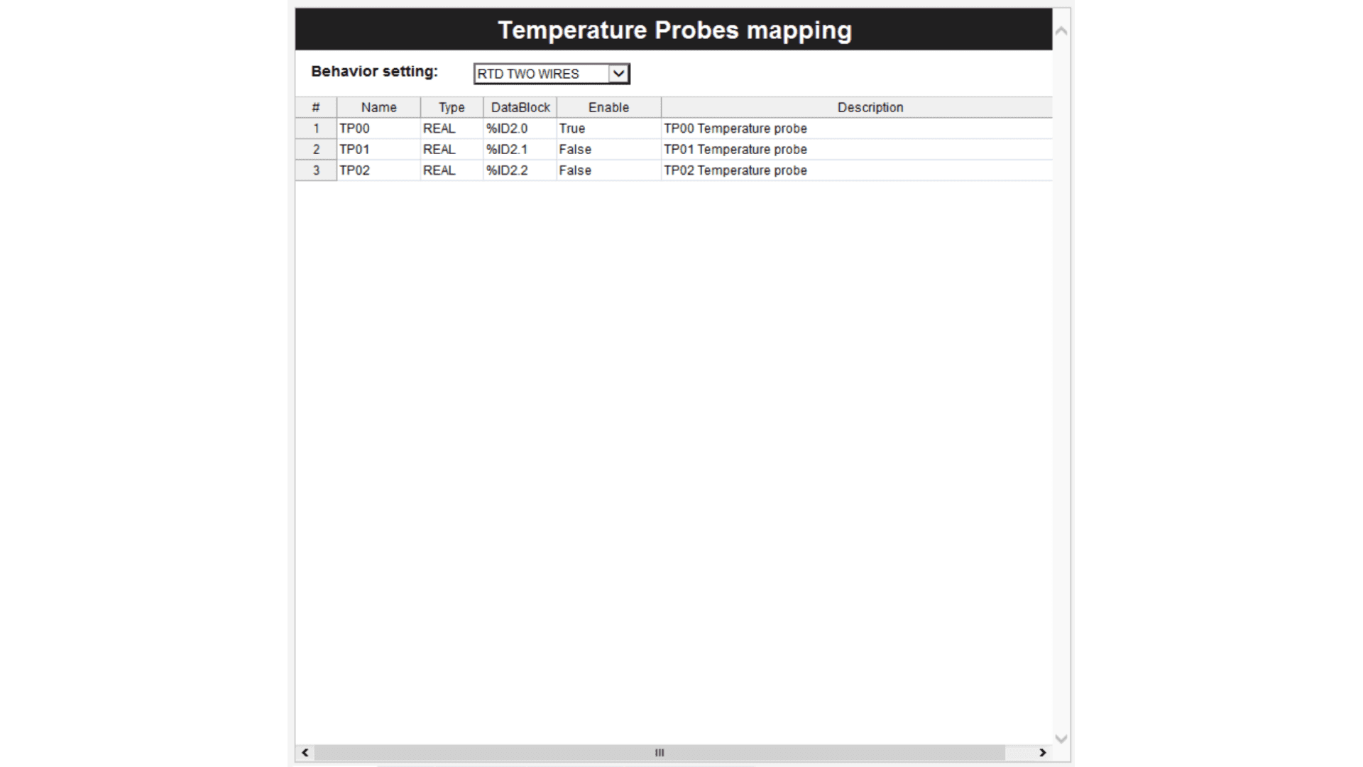 RTD TWO WIRES connected to the TP00, so we will set the Enable option as True shown in the following image:Inside the