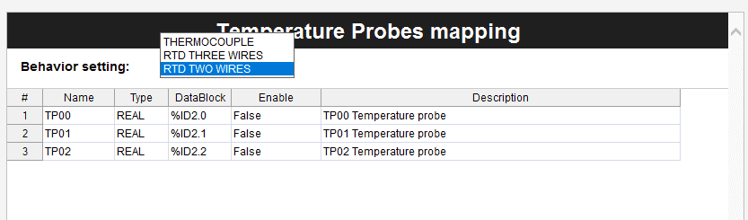 On type, press the [...] button and scroll down to find and select the "sysTempProbesType". This variable has the automatic process to convert the RTD values into real-type temperature values.