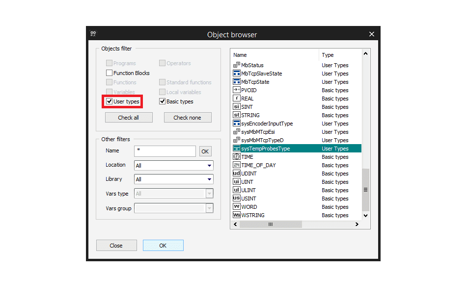 Note: ensure that you have marked the User Type option to visualize the sysTempProbesType variable type