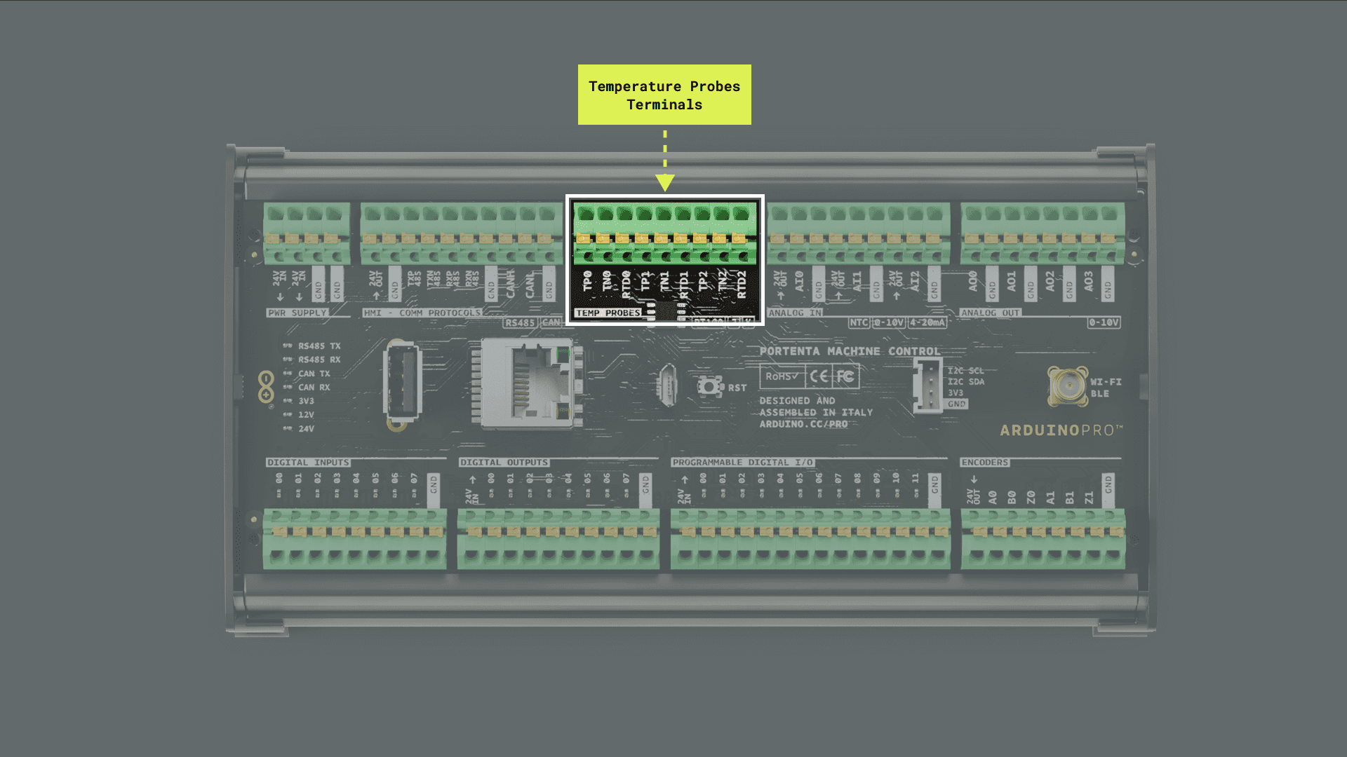 Temperature sensing: With three software-configurable temperature channels, the Portenta Machine Control can measure a variety of temperature ranges using: