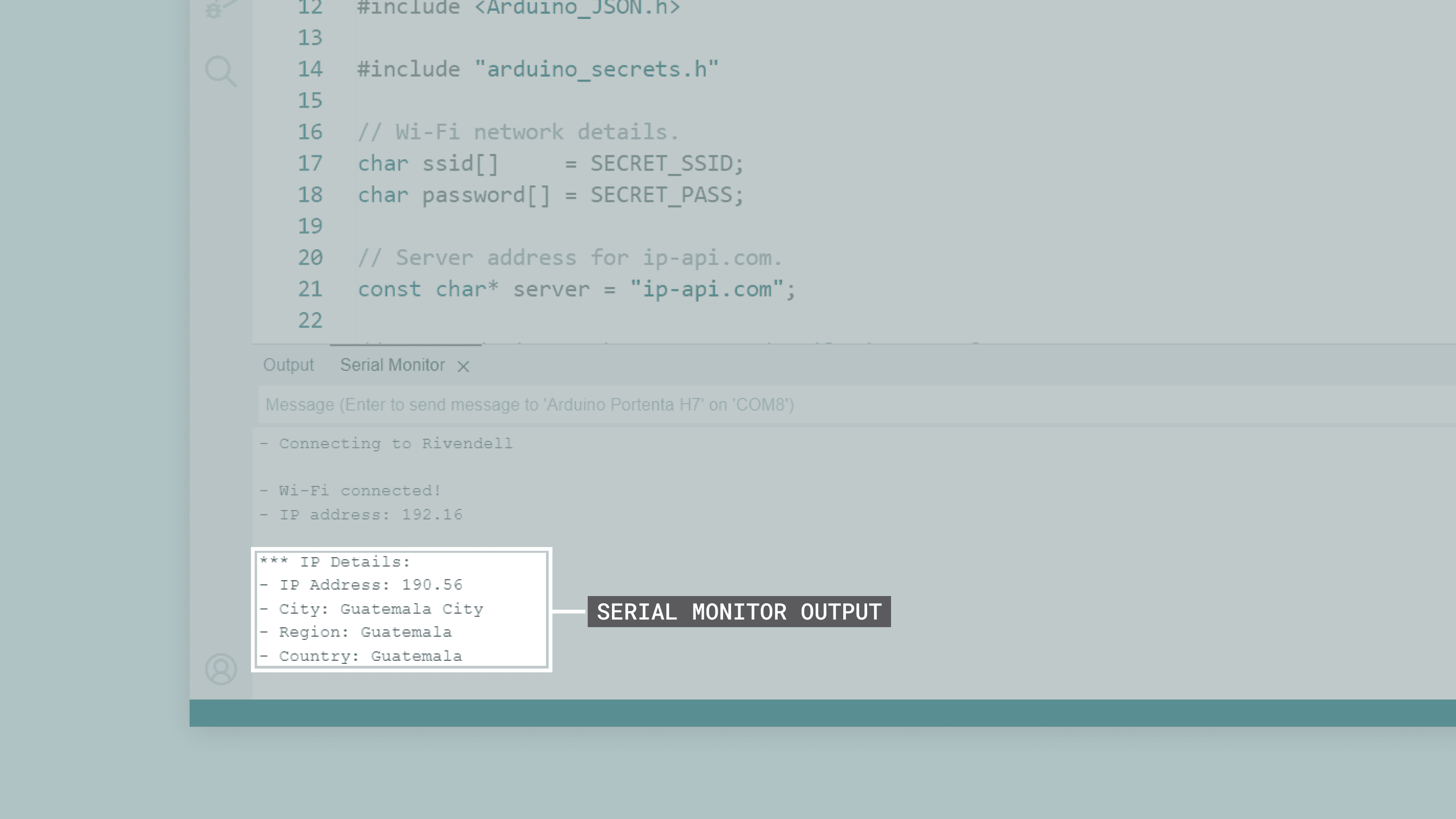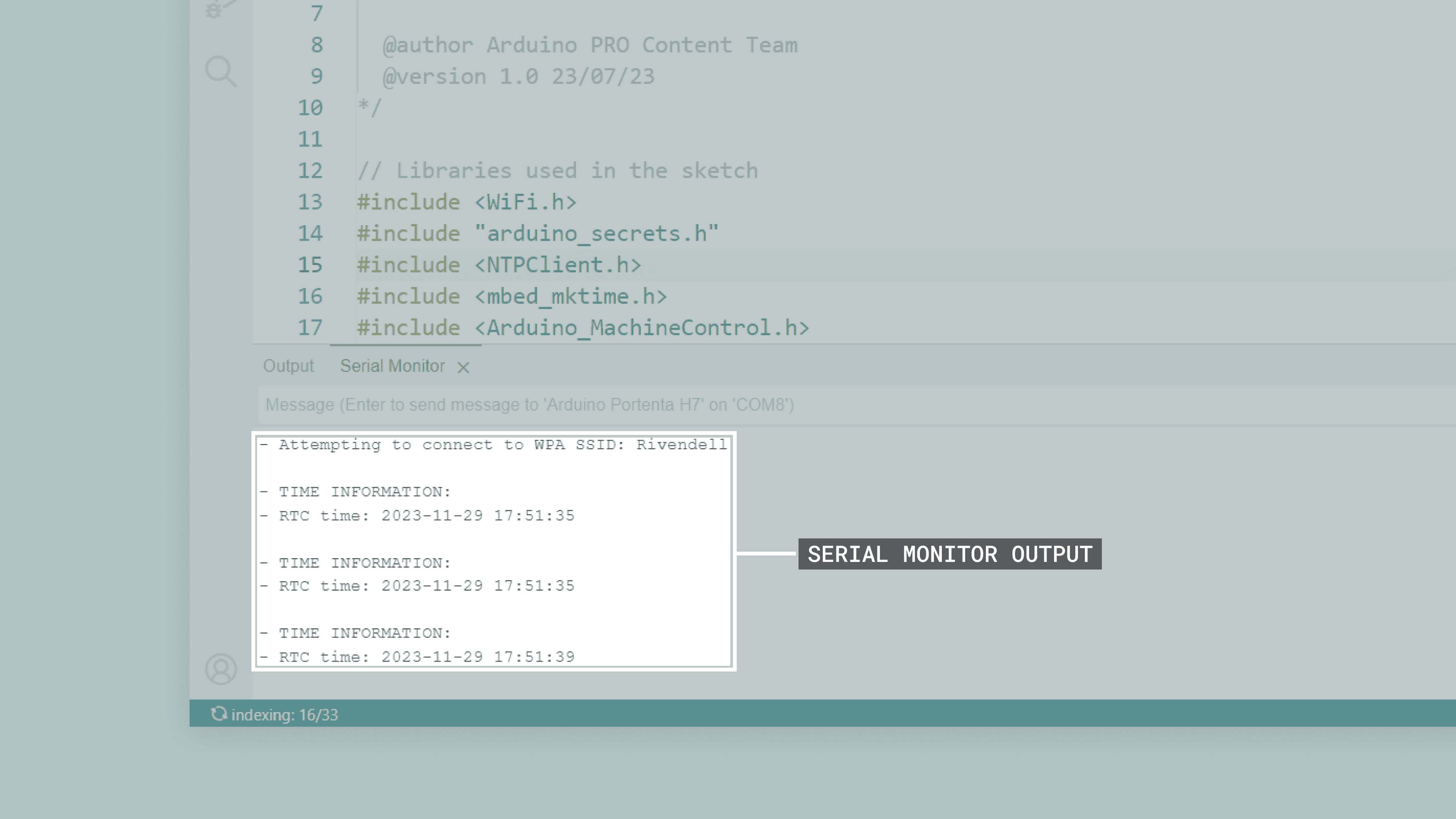 13void setup() {14 // Initialize serial communication15 Serial.begin(9600);´16 // Wait 2.5 seconds for the serial port availability, then start the transmission17 for (const auto timeout = millis() + 2500; !Serial && millis() < timeout; delay(250)); 18}19