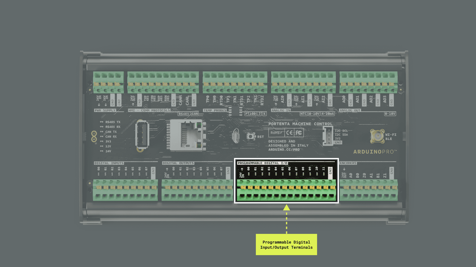 Digital and analog ports: Equipped with a versatile set of input and output ports, the Portenta Machine Control supports: