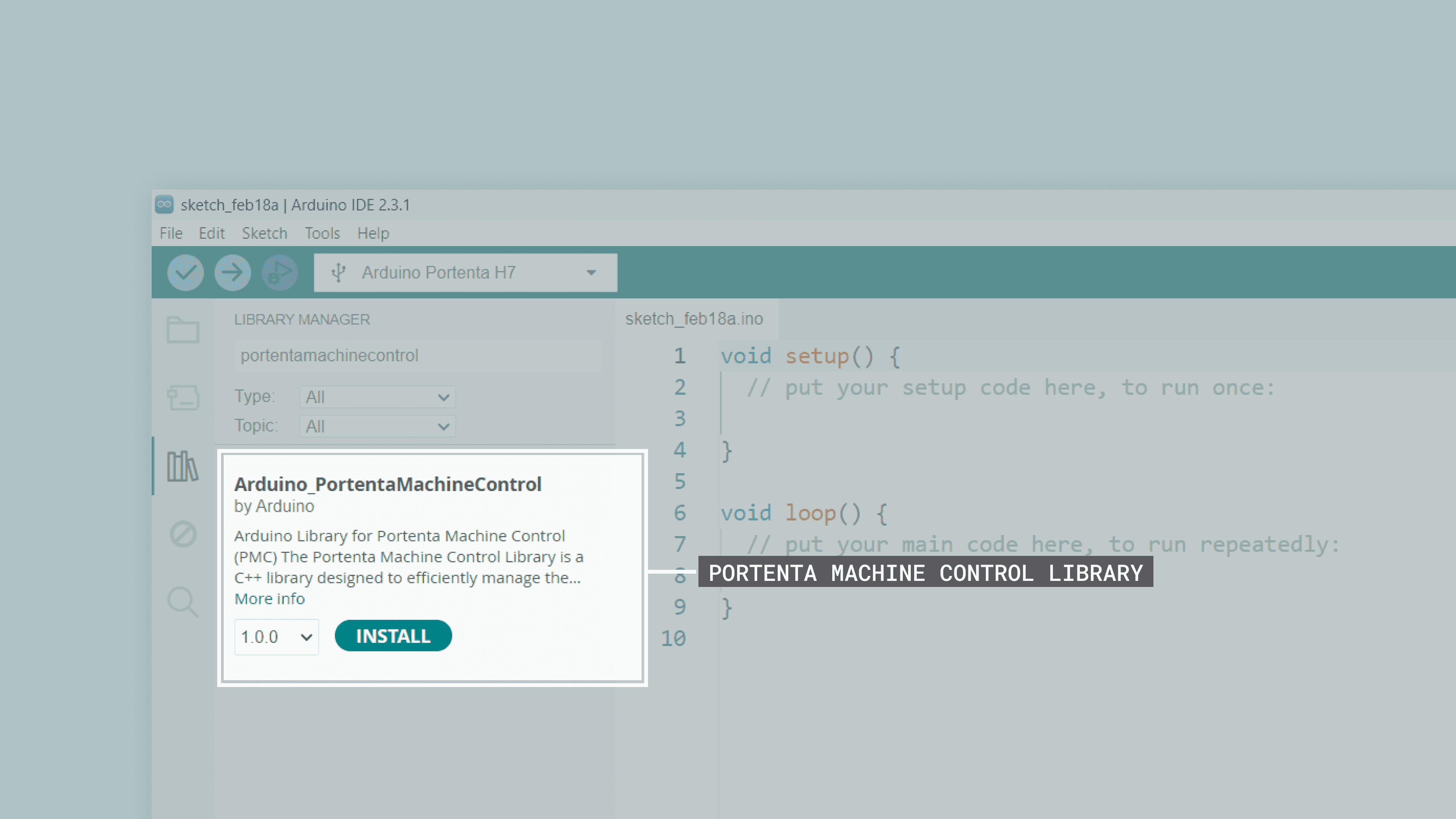 library; please refer to this section of the User Manual to learn how to do it.Arduino_PortentaMachineControl