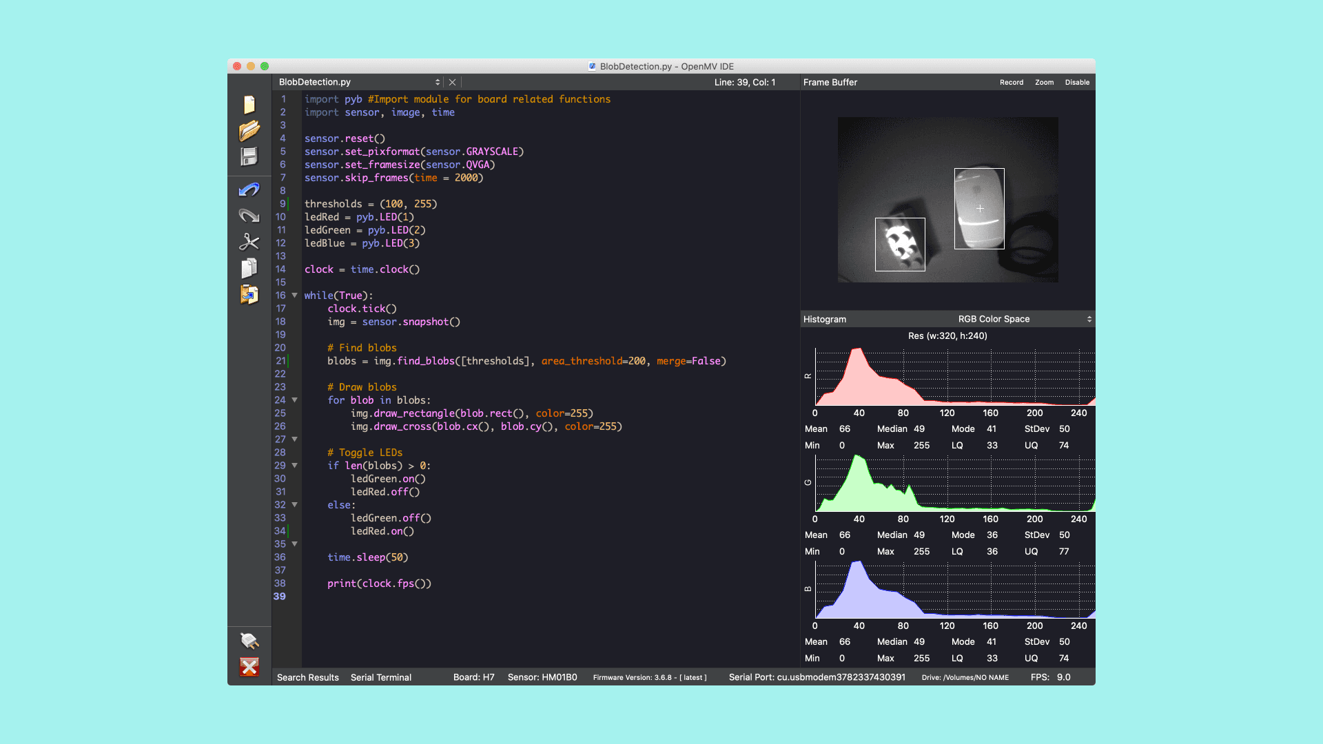 QVGA, which you will use in this tutorial.3. Detecting Blobs