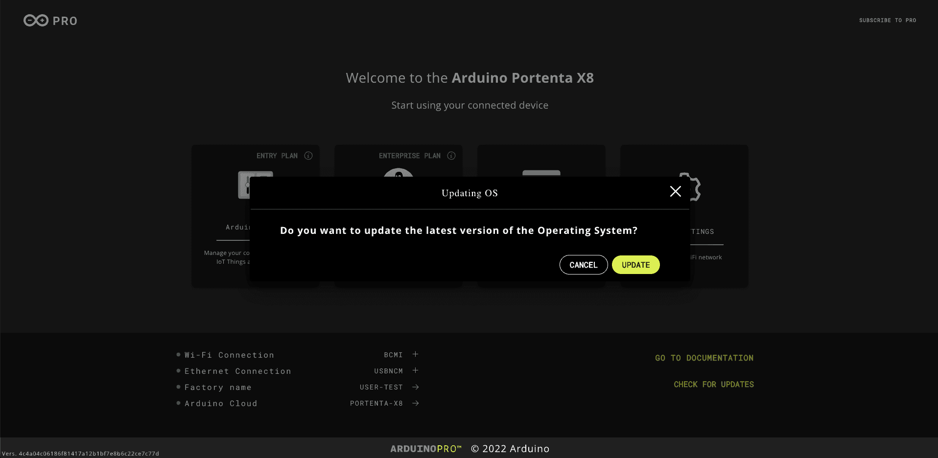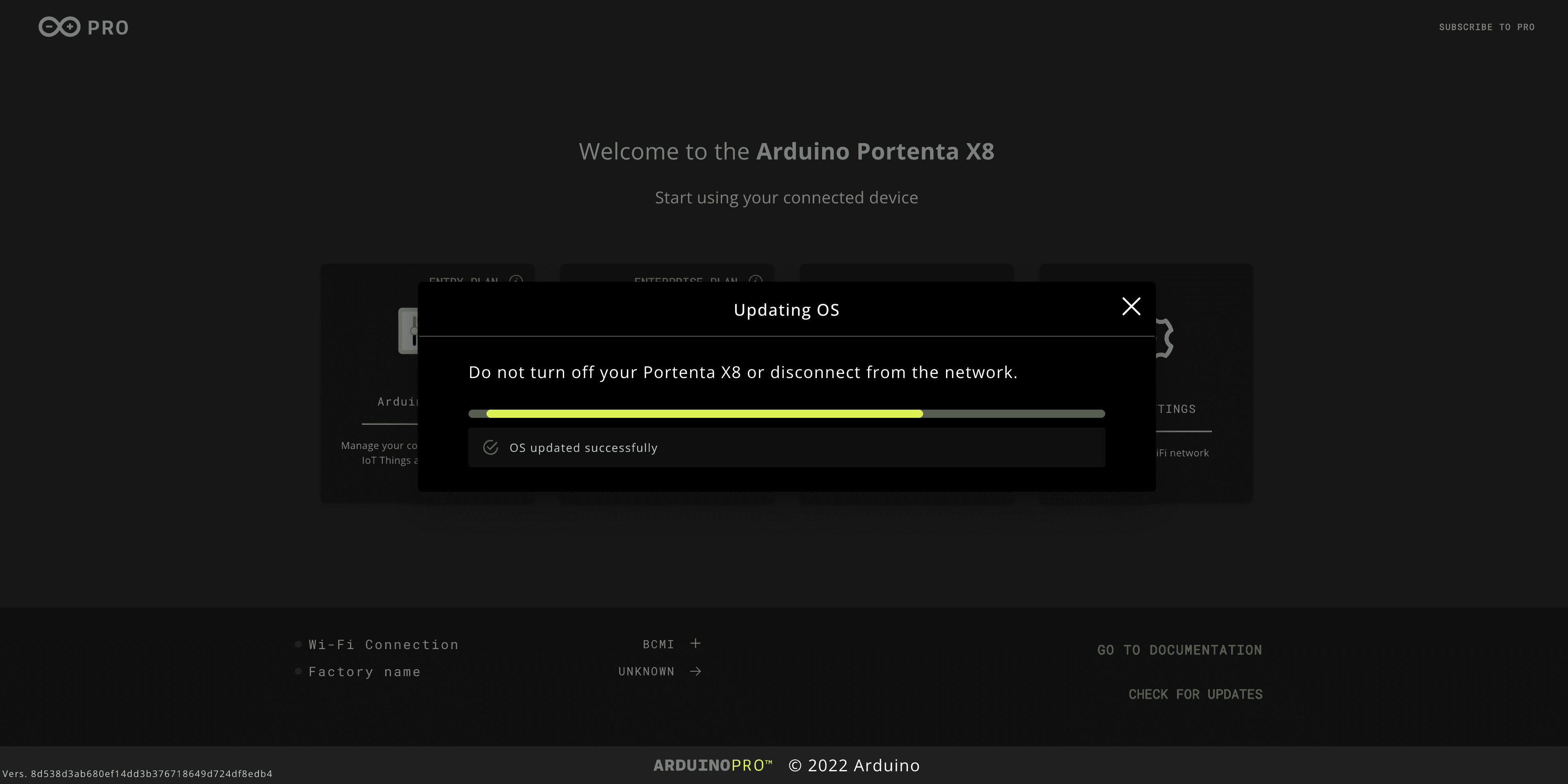 Learn how to update your Portenta X8 with your FoundriesFactory by checking the dedicated section of this user manual.