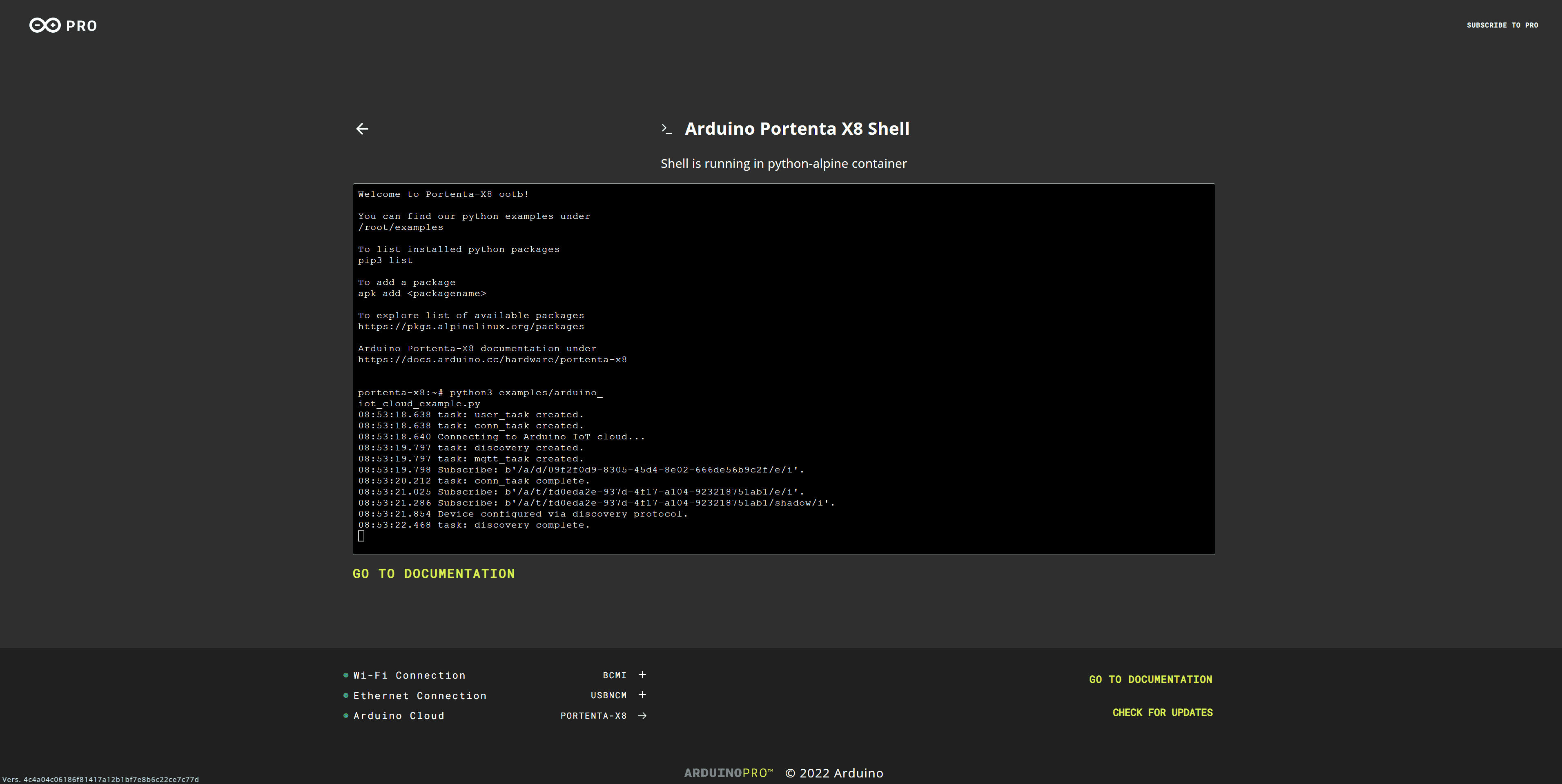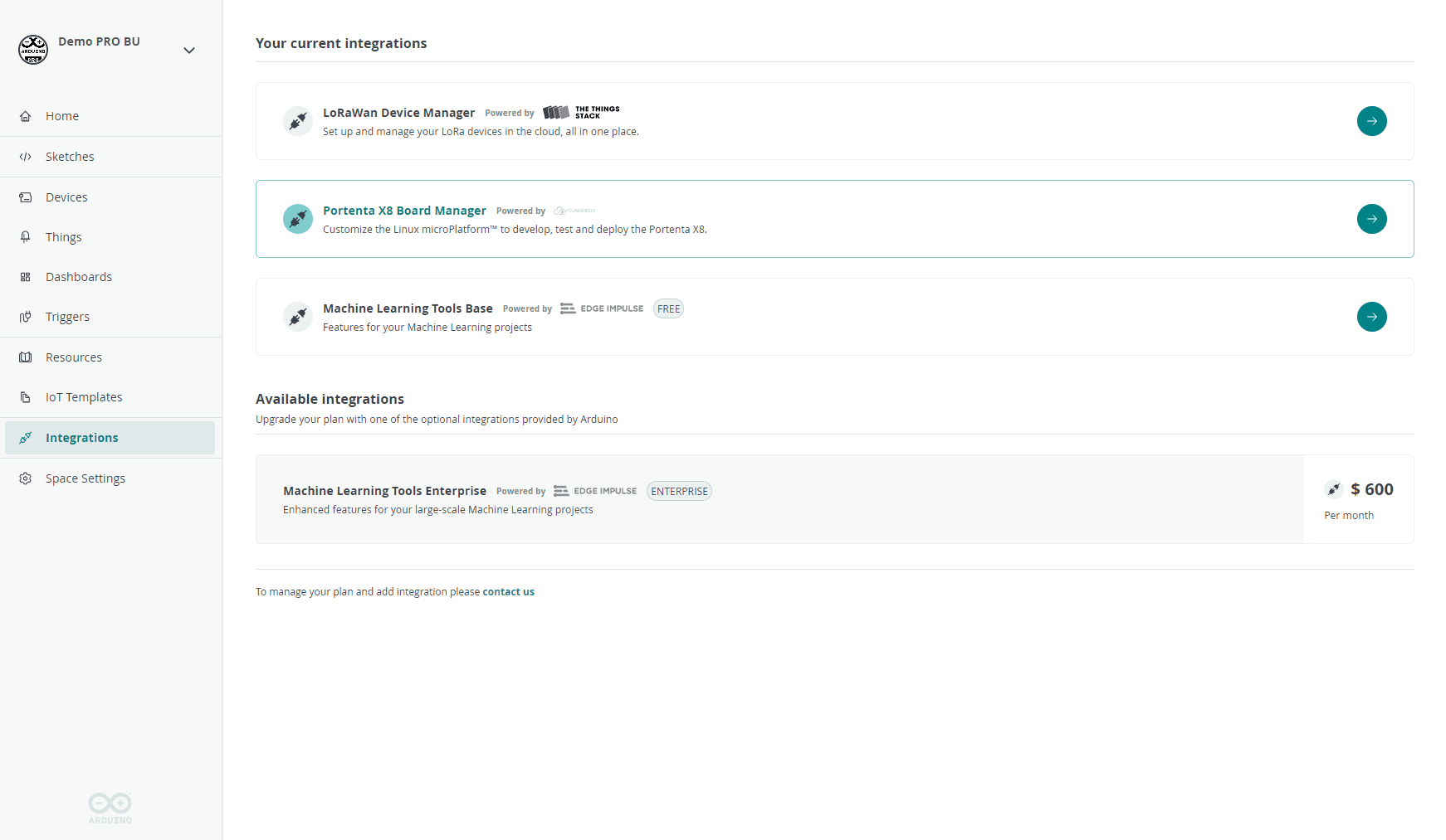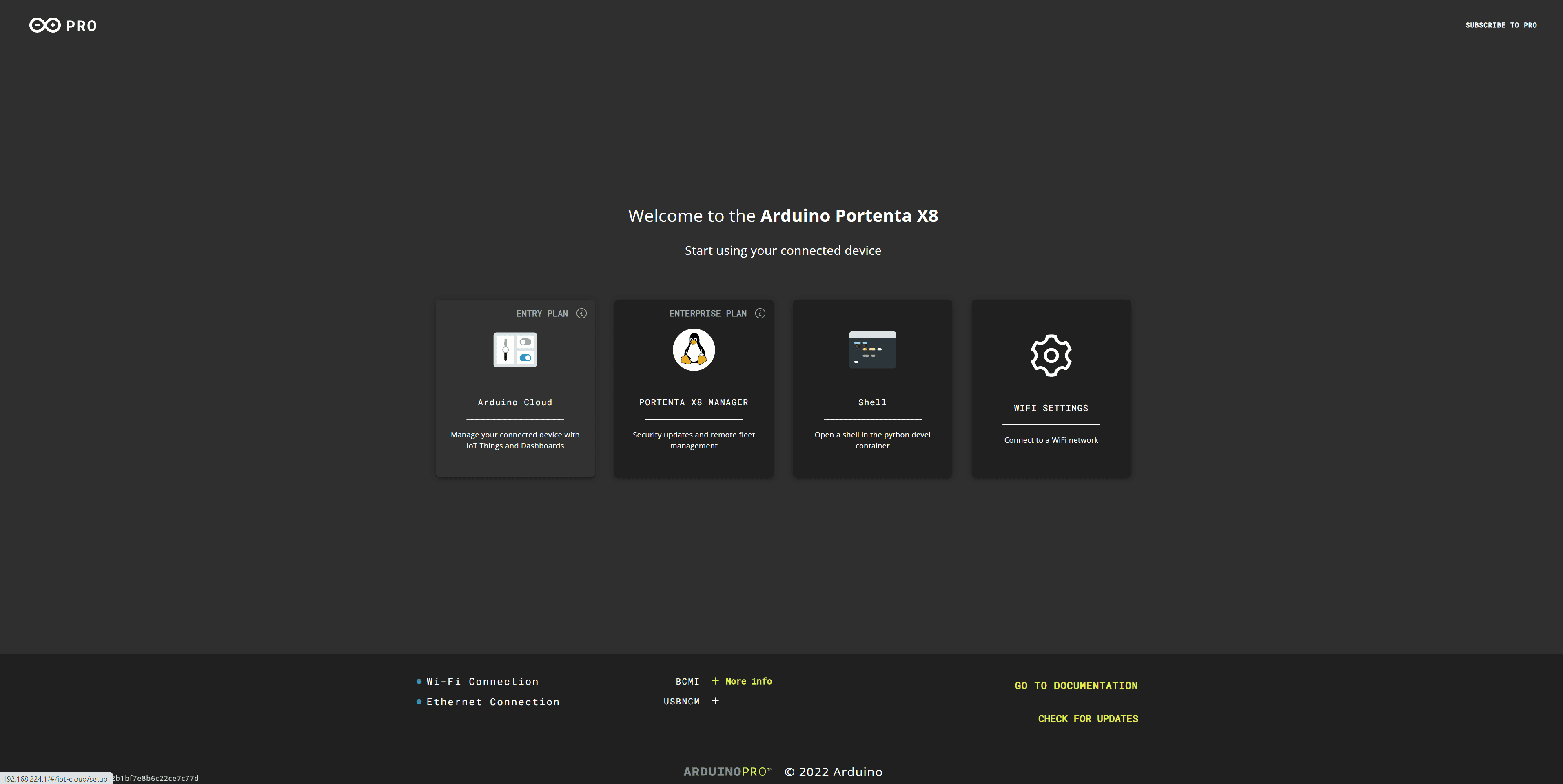 Click here to learn more about Arduino Cloud for business and the Portenta X8 Board Manager add-on. Otherwise, check the dedicated section of this user manual to start working with Portenta X8 Manager.