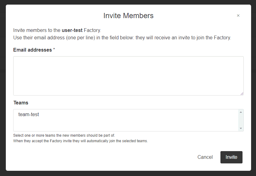 Once you created the team, you can go to the Members section of your FoundriesFactory to invite new members to the team.