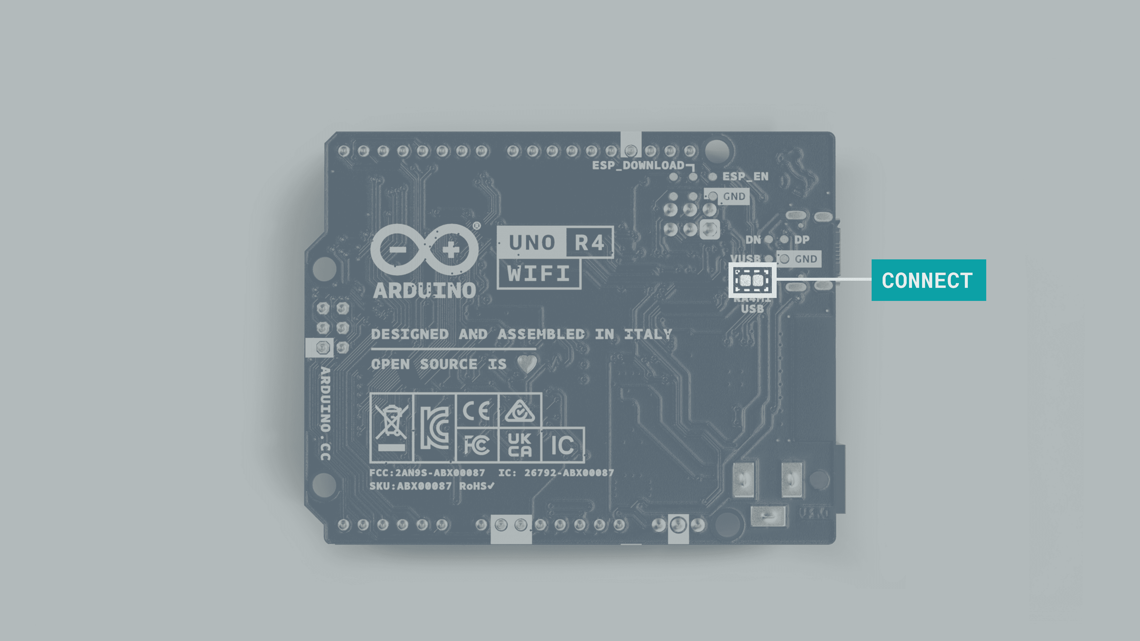 Please note that the ESP32 has a default firmware installed, which is set to communicate with the RA4M1 chip. Any direct programming of the ESP32 will override that firmware and the communication between the chips may be disrupted until the default firmware is restored.
